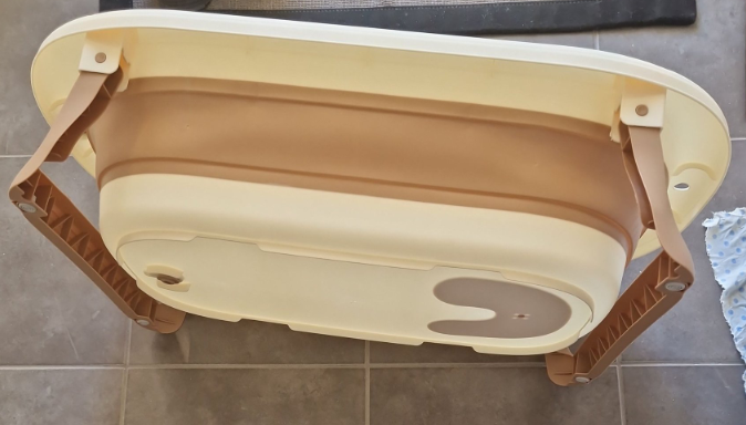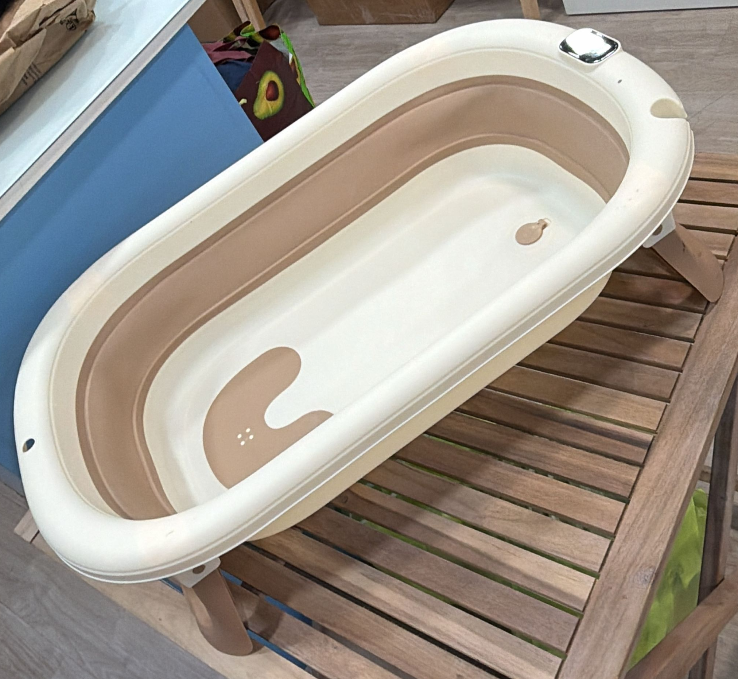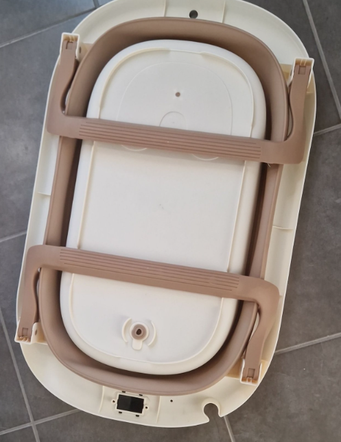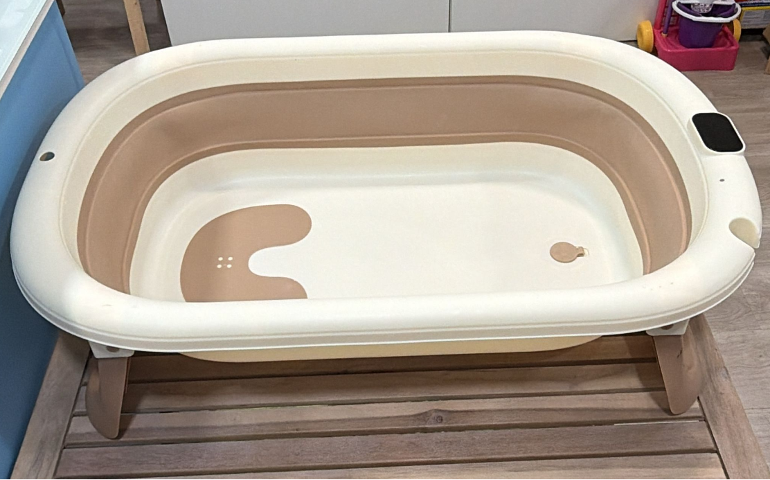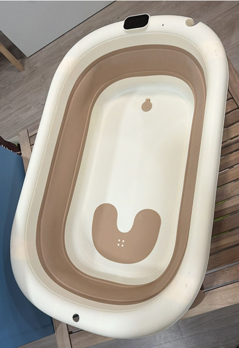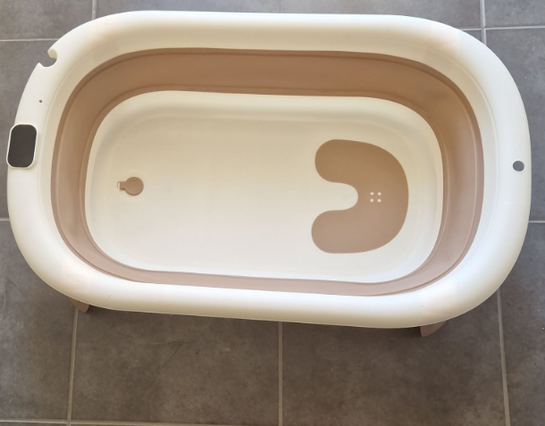 O seu design dobrável permite abrir e fechar a banheira de forma simples, ocupando muito pouco espaço quando não está a ser utilizada. Inclui um pequeno suporte integrado, que ajuda a posicionar melhor o bebé durante o banho, proporcionando maior conforto e estabilidade para os adultos.