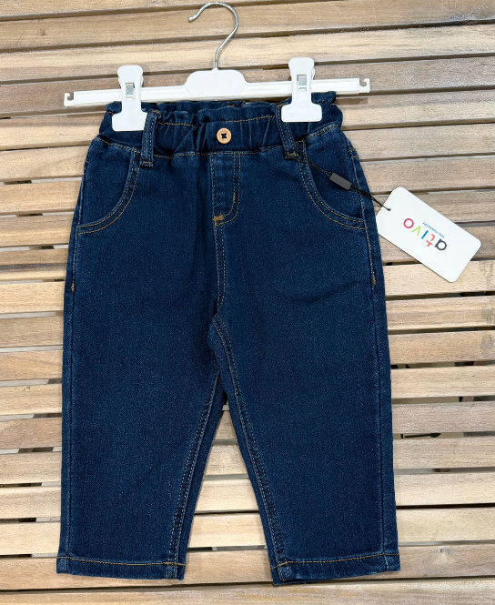Calça jeans para bebé da marca Ativo, confortável, resistente e prática. Ideal para o dia a dia, oferece liberdade de movimento e um corte moderno que combina facilmente com diversas peças do guarda-roupa.